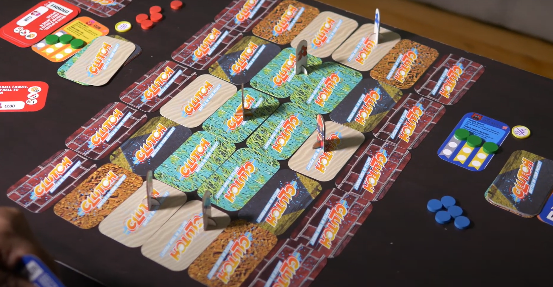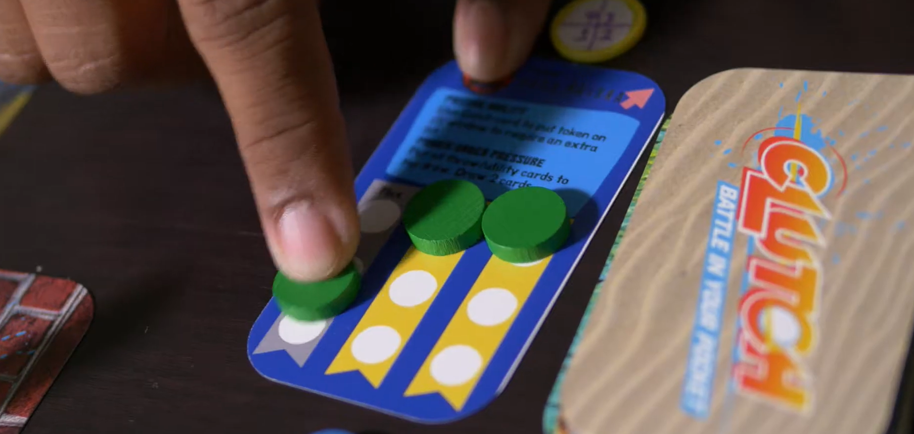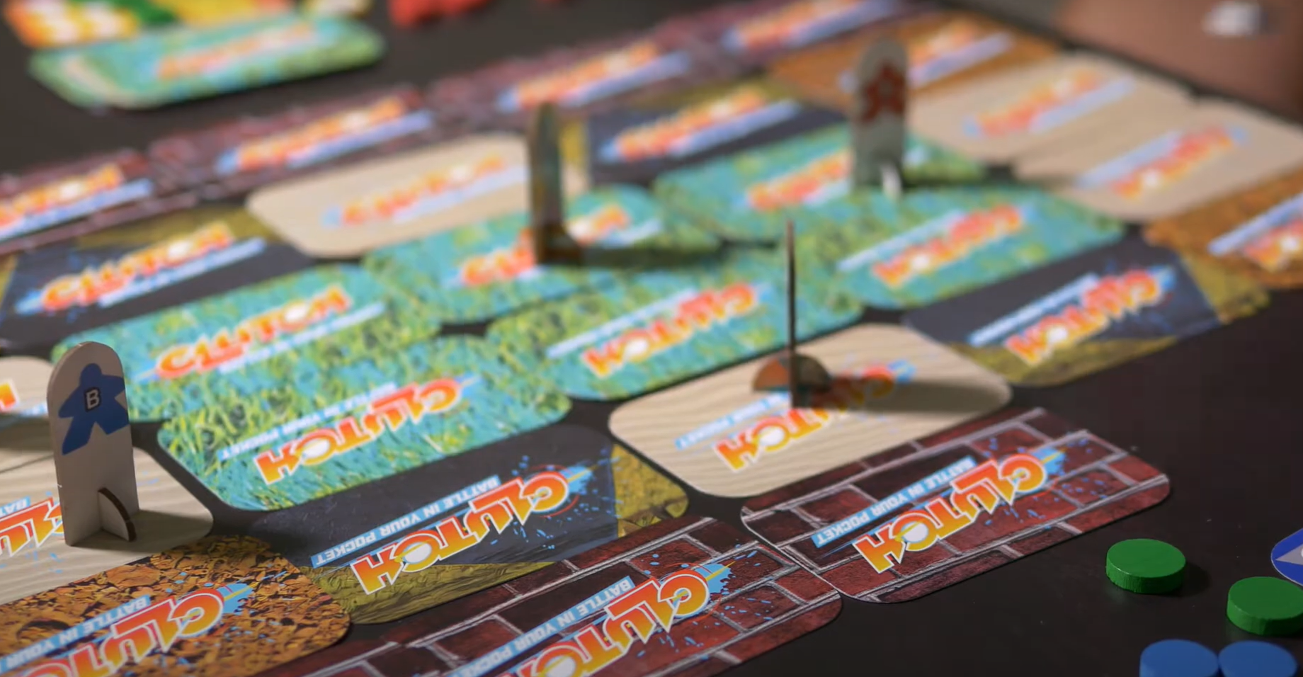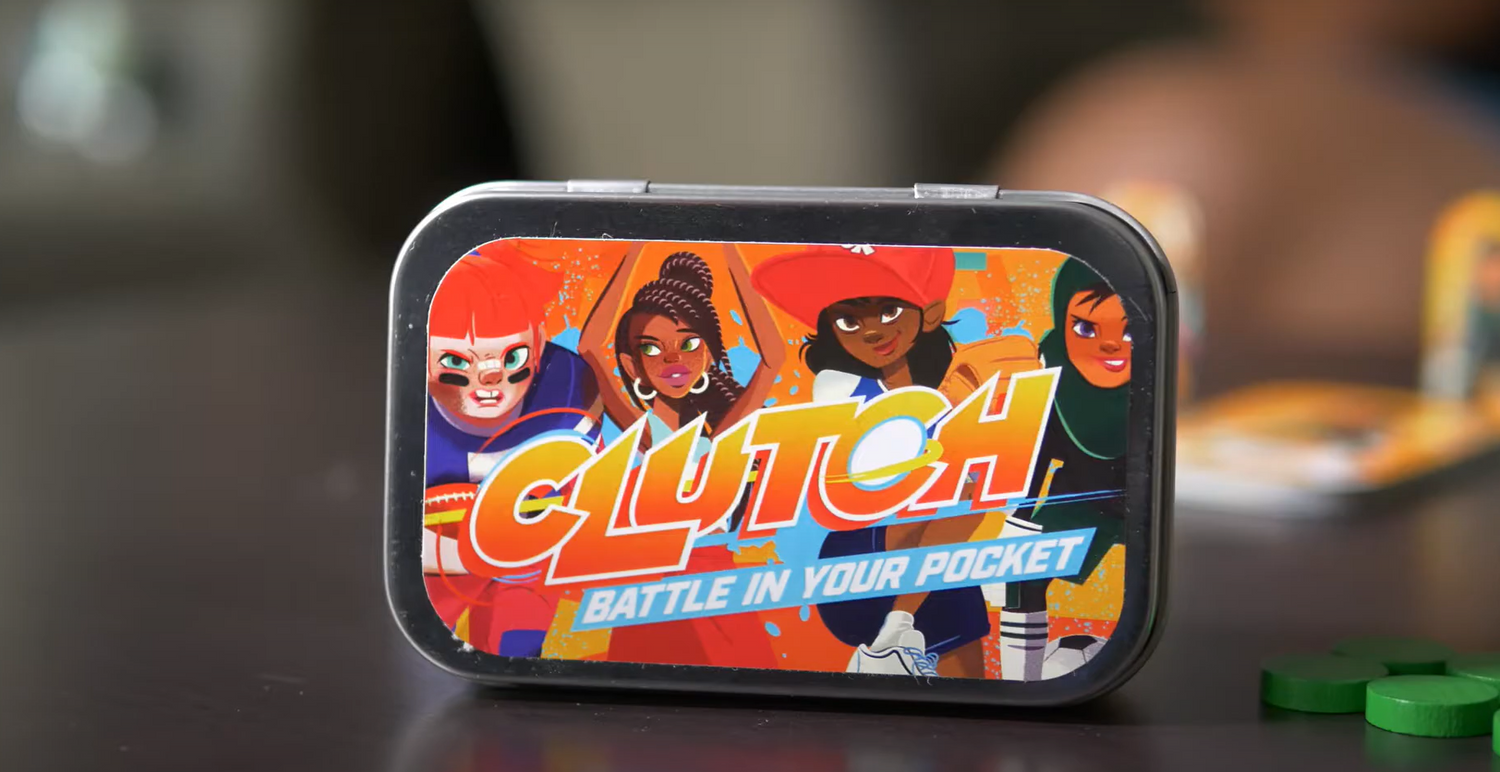 Conviently in a mint tin, Clutch efficiently uses its components to use half the cards in the game, with the other half of the cards being used as the board